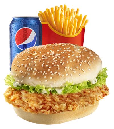 Fun Cripsy Chicken Burger Chicken Popcorn (5pcs)+fries+coke